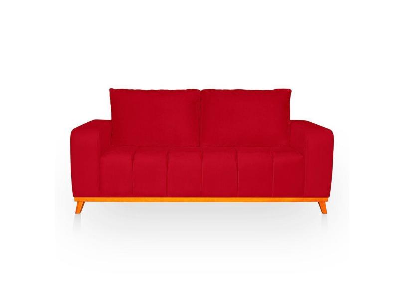Sofá 3 Lugares Memphis Ultra Conforto Em Madeira Maciça E Suede Vermelho - Lh Decor