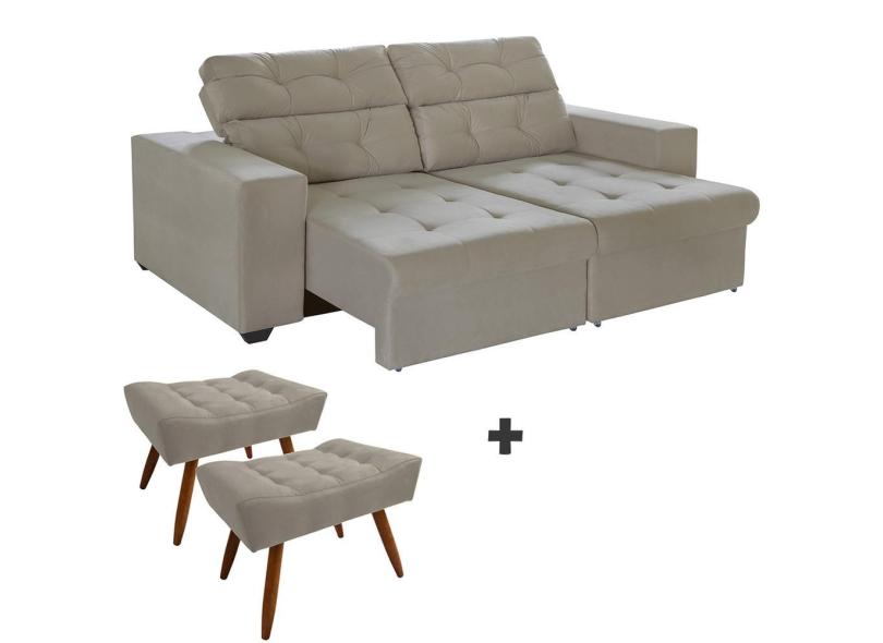 Sofá 3 Lugares New Itália 2,10m Retrátil, Reclinável, com 2 Puffs pés Palito, Bege