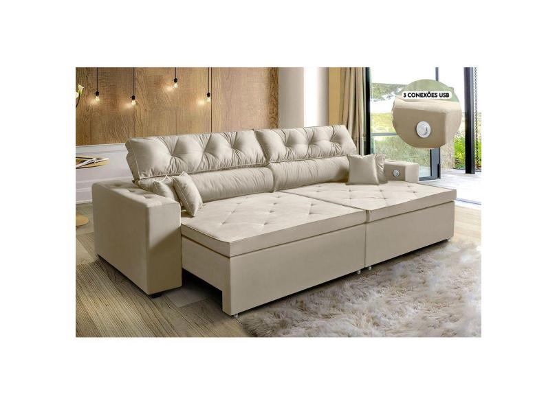 Sofá 3 Lugares Retrátil, 2,02 M Tecnologia De Usb Bege