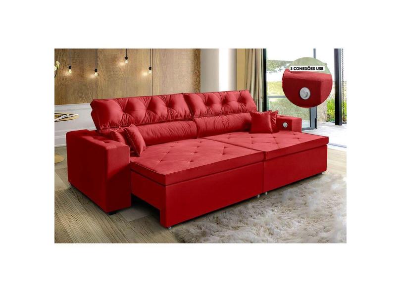Sofá 3 Lugares Retrátil 2,02 m, Tecnologia Usb Vermelho
