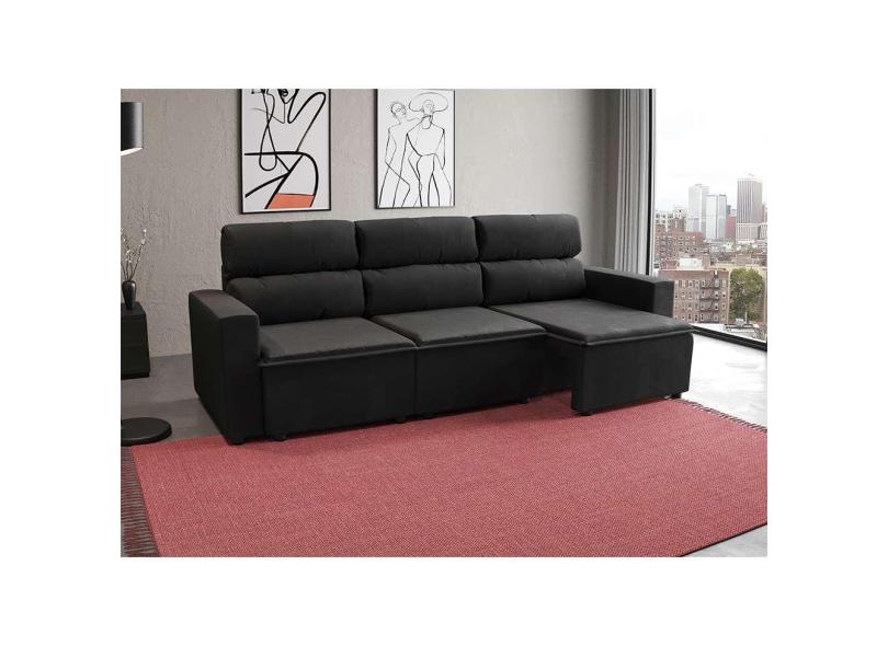 Sofá 3 Lugares Retrátil E Reclinável Hanôver Ii Suede Preto 210 Cm