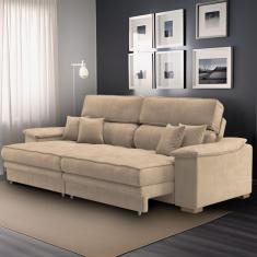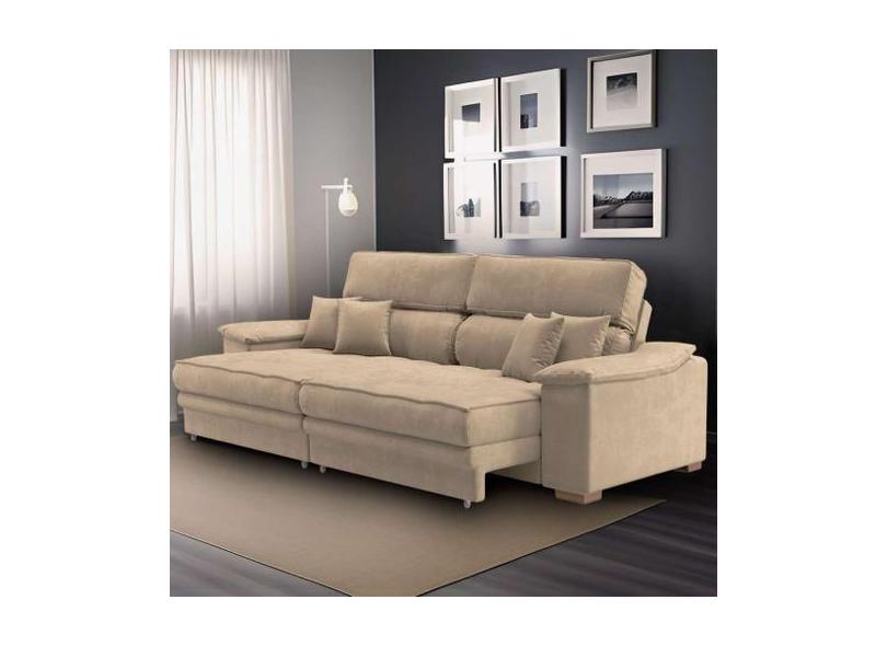 Sofá 3 Lugares Retrátil e Reclinável Nicolas Veludo Bege - Mobly