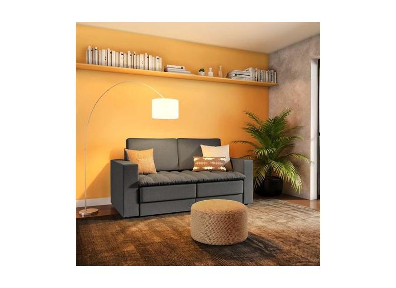 Sofá 3 Lugares Retrátil Nyon Linho Cinza 180 cm - Mobly