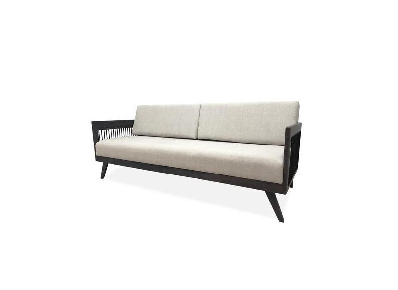 Sofá 3 Lugares Saibi Ozki 200 Cm Bege Madeira Eucalipto Amêndoa Corda