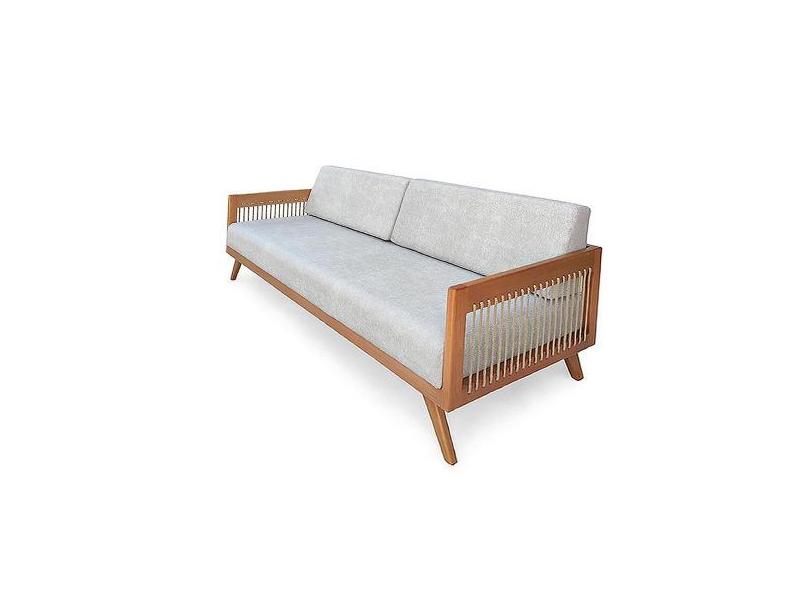 Sofá 3 Lugares Saibi Ozki 200cm Poliéster Cinza Madeira Cedro Corda Ná