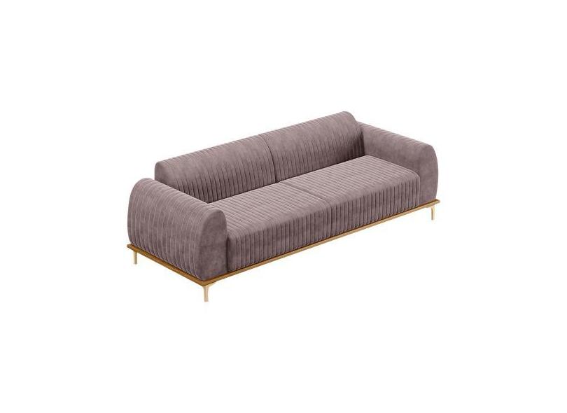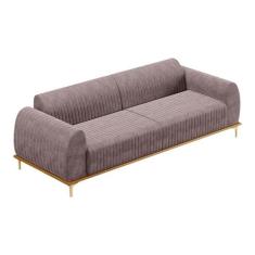 Sofá 3 Lugares Sala De Estar Base De Madeira Euro 210 Cm Veludo Rosê -