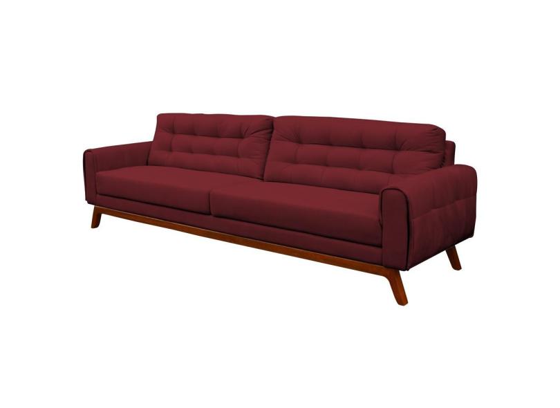 Sofá 3 Lugares Sala De Estar Eros 210 Cm Veludo Vinho Base Fixa - Gran Belo