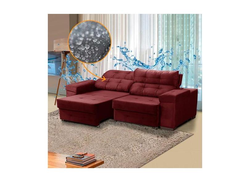 Sofá 3 Lugares Veludo Impermeabilizado Vermelho Ravello 220 Cm Retráti
