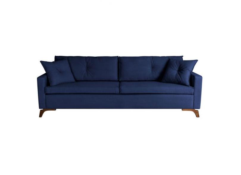 Sofá 3 Lugares Viena Veludo Azul 210 cm