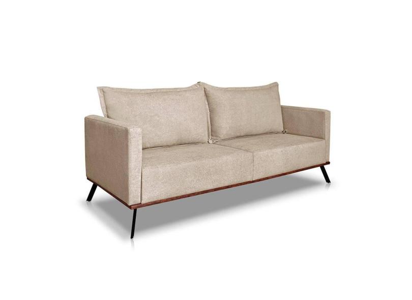 Sofá 3 Lugares Zeus Linho Bouclê Bege 200 cm