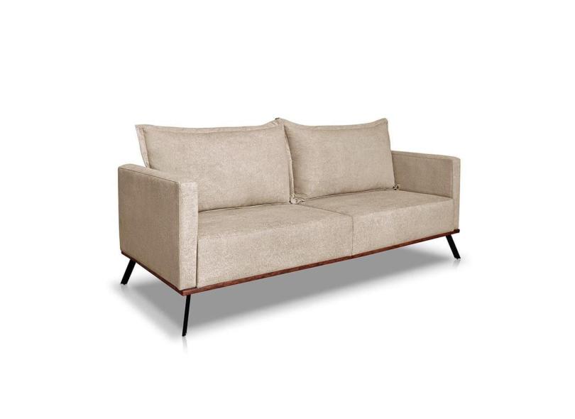 Sofá 3 Lugares Zeus Linho Bouclê Bege 220 cm