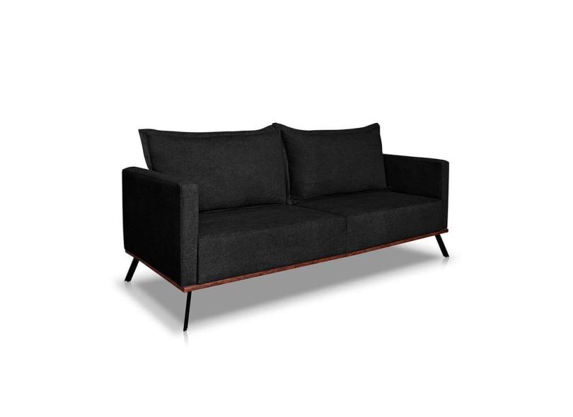 Sofá 3 Lugares Zeus Linho Bouclê Preto 180 cm