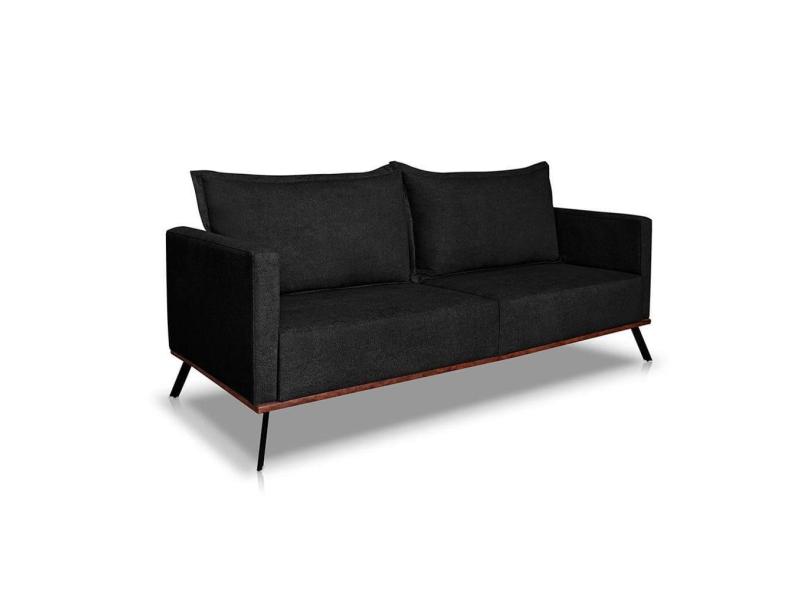 Sofá 3 Lugares Zeus Linho Bouclê Preto 200 cm