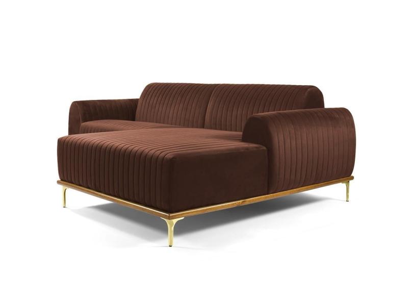 Sofá 4 Lugares Com Chaise Molino 265 Cm Veludo Marrom C-276