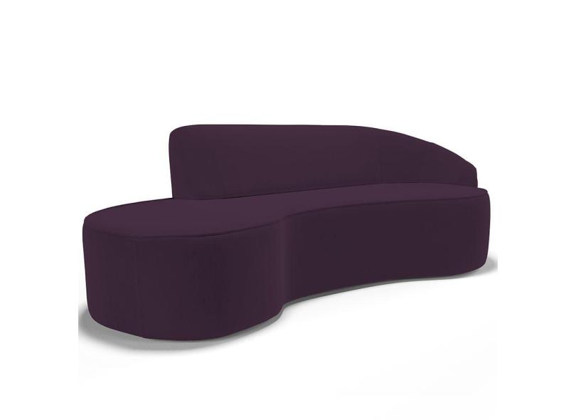 Sofá 4 Lugares Curvo Sala de Estar Living Firenze Direito D02 Veludo Roxo 280 cm C-292 - Lyam