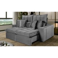 O menor preço encontrado no Brasil para Sofá 4 Lugares Retrátil e Reclinável México Veludo com Molas Ensacadas Cinza Cinza atualmente é R$ 2.999,98.