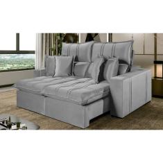 Sofá 4 Lugares Retrátil e Reclinável México Veludo com Molas Ensacadas Cinza Prata