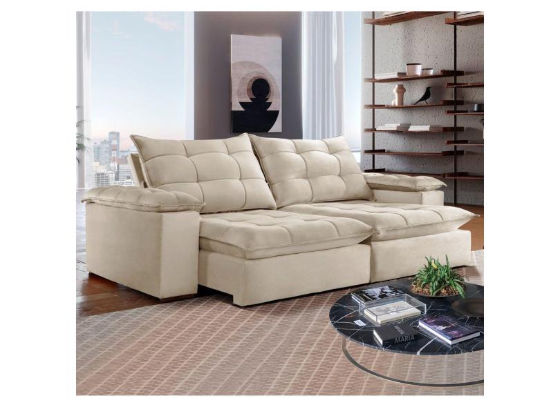 Sofá 5 Lugares Retrátil e Reclinável 290cm Espanha Celflex Bege Claro