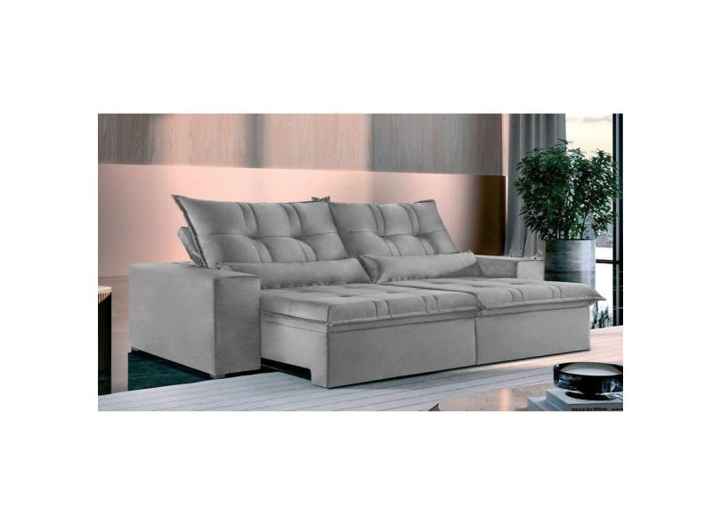 Sofá 5 Lugares Retrátil e Reclinável Galícia Veludo com Molas Cinza Prata