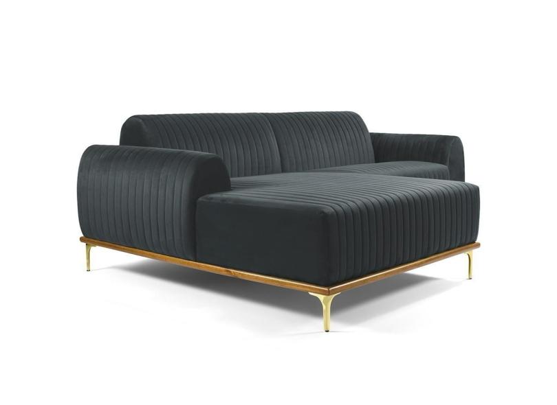 Sofá 6 Lugares Com Chaise Molino 350cm Veludo Cinza C-317