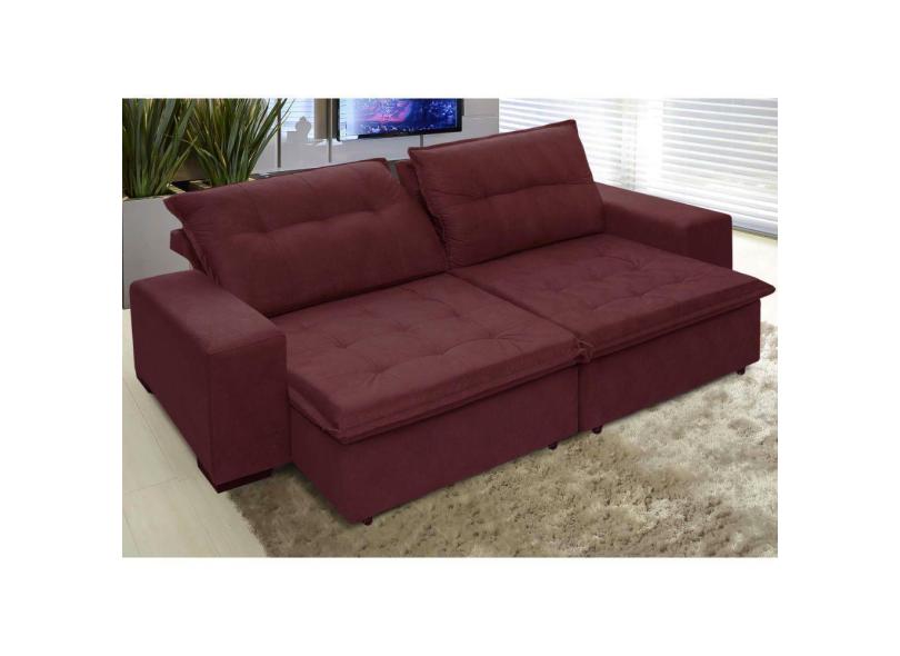 Sofá Austrália 2,12 Mts Retrátil e Reclinavel Tecido Suede Pluma Vinho - Moveis Marfim