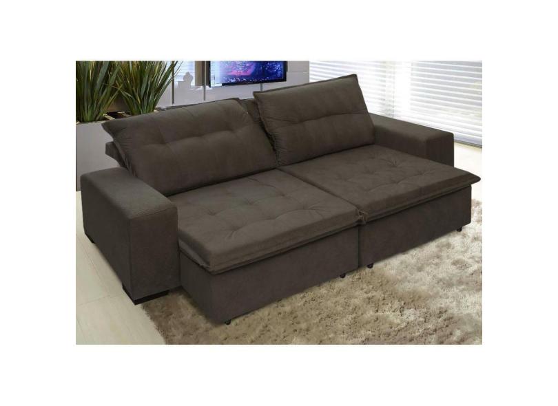 Sofá Austrália 2,32 Mts Retrátil e Reclinavel Tecido Suede Pluma Café - Moveis Marfim
