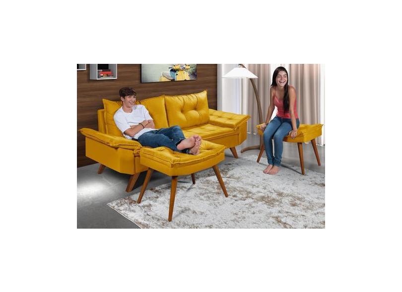 O menor preço encontrado no Brasil para Sofá Bariloche 3 Lugares Em Suede + Duas Banquetas Rubi - Essencial Es atualmente é R$ 1.499,00.