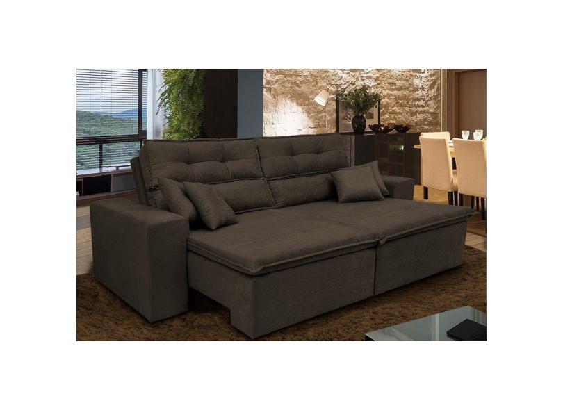 Sofá Cairo. 2,72m Retrátil, Reclinável Tecido Suede Vermelho