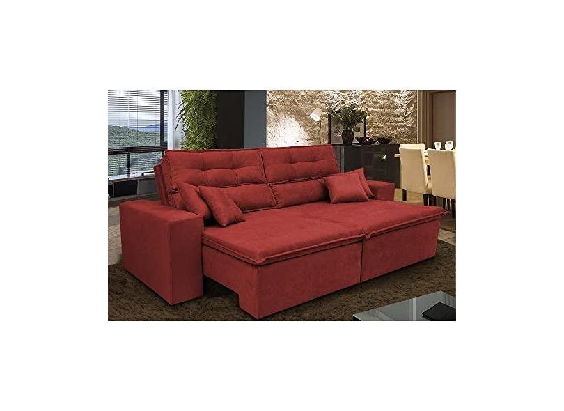 Sofá Cairo 2,92m Retrátil, Reclinável Tecido Suede Vermelho