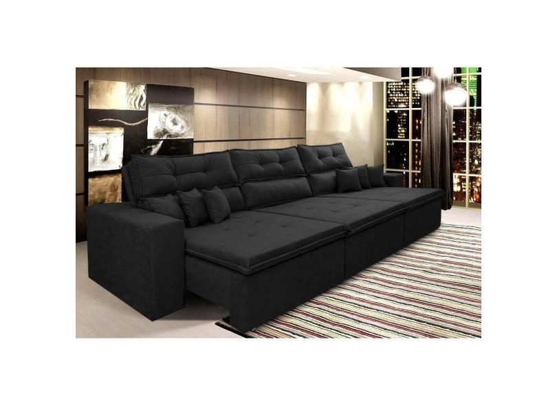Sofá Cairo 3,52m Retrátil, Reclinável Tecido Suede Preto