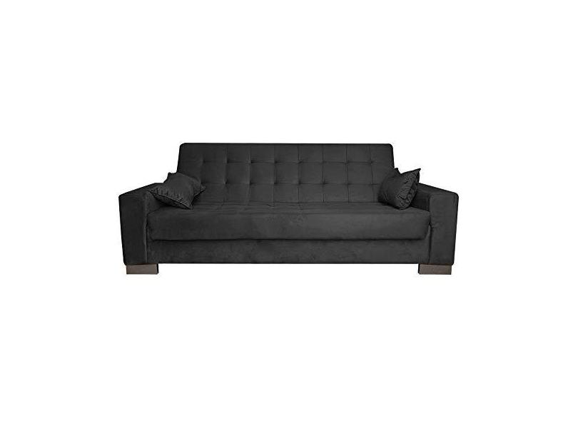 Sofá Cama 2 Lugares para Sala de Estar Lisboa Suede Preto - D'Rossi