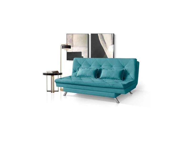 Sofá Cama 3 Lugares Casal Reclinável Canaã Azul Turquesa - Sonho Da Ma