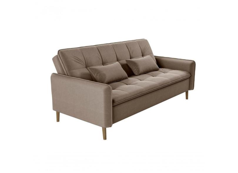 Sofá Cama Casal Reclinável Donna - Veludo Turkey Castor