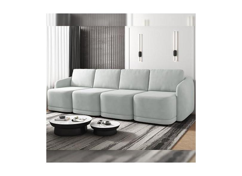 Sofá Cama Modulado Retrátil e Reclinável Decorativo Varsóvia 316cm Veludo Cinza G33 - Gran Belo