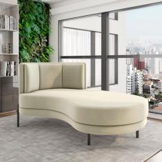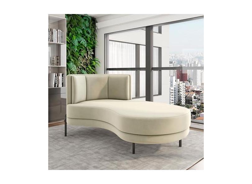 Sofá Chaise Lado Direito Downey Sala de Estar Veludo Bege G15 - Gran Belo