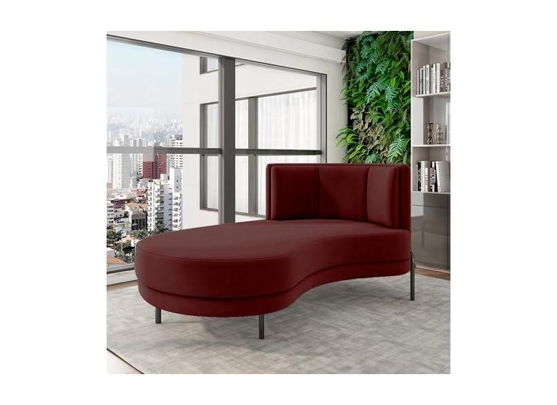 Sofá Chaise Lado Esquerdo Downey Sala de Estar Veludo Vermelho G15 - Gran Belo