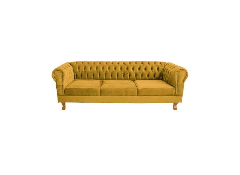 Sofá Chesterfield Capitone Duque Suede Amarelo1,80cm - novo encanto