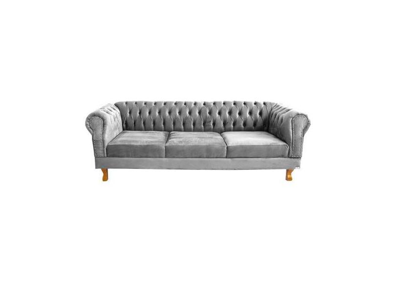 Sofá Chesterfield Capitone Duque Suede Cinza 2,00 - Novo Encanto