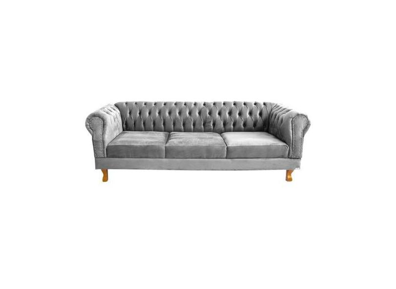 Sofá Chesterfield Capitone Duque Suede Cinza 2,00cm - novo encanto