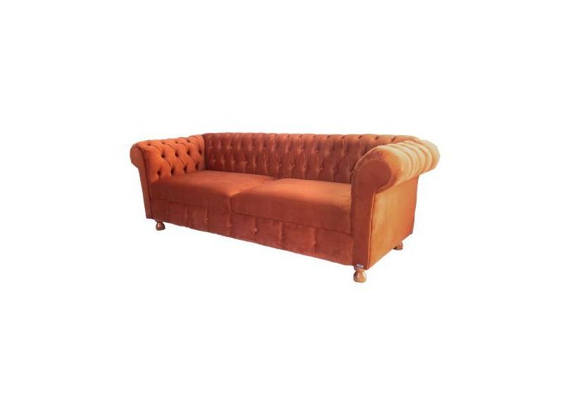 Sofá Chesterfield Capitone Luiz XV Suede Terracota 2,00cm - novo encan