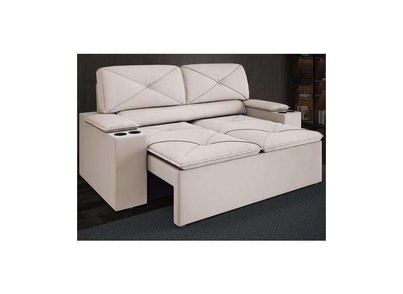 Sofá com Porta Copos Retrátil e Reclinável Pop 1,54m Velosuede Areia -