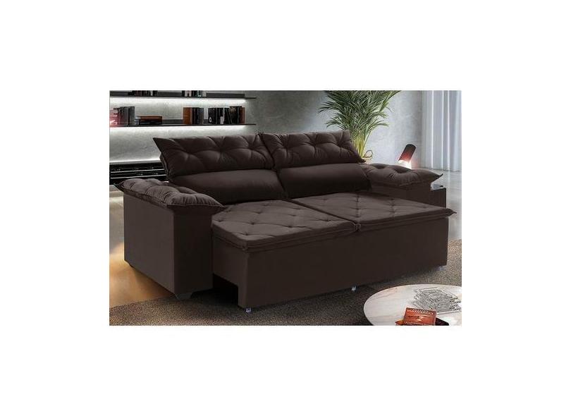 Sofá Compact 150 Cm Retrátil E Reclinável Molas Espirais Suede Marrom