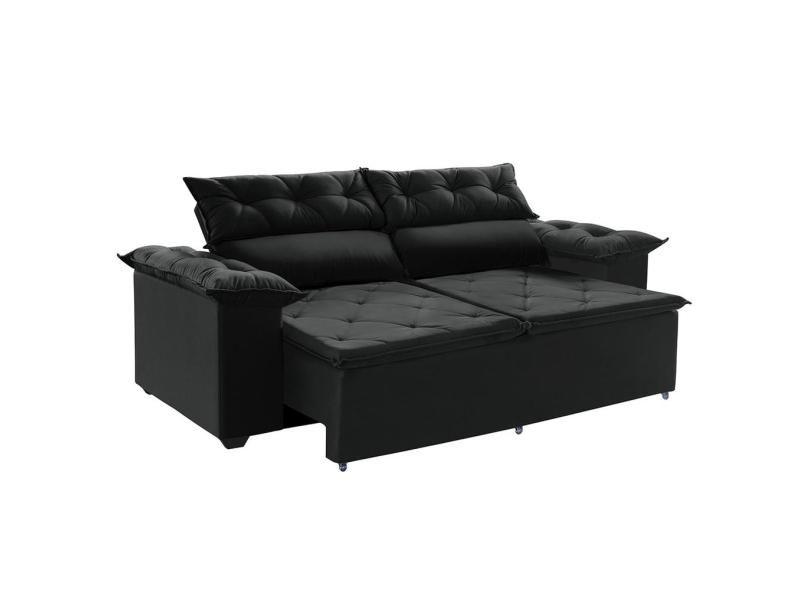 Sofá Compact 200cm com Molas Espirais Reclinável, Retrátil - Preto