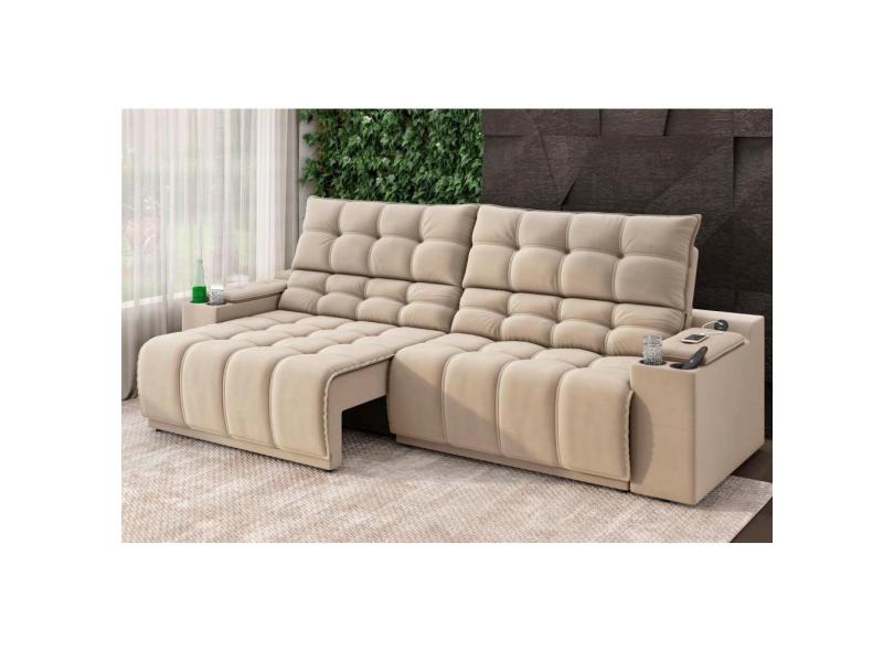 O menor preço encontrado no Brasil para Sofá Connect Premium 2,30m Assento Retrátil/Reclinável com porta copos e entrada USB Suede Capuccino atualmente é R$ 1.839,01.