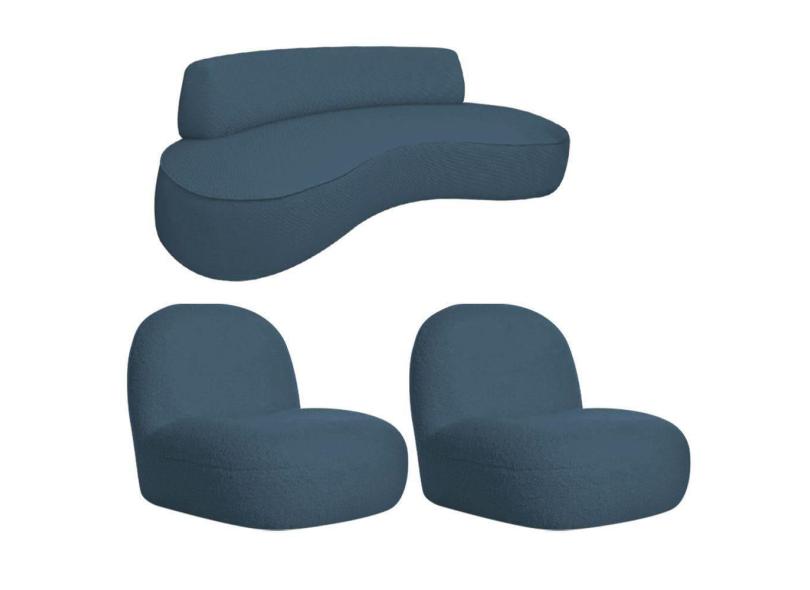 Sofá Curvo 200cm 2 Lugares E 2 Poltrona Orgânico Amsterdã Linho Adj Decor Azul Royal