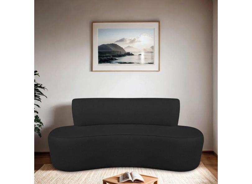 Sofá Curvo Orgânico 140cm 2 Lugares Linho Antonela Preto