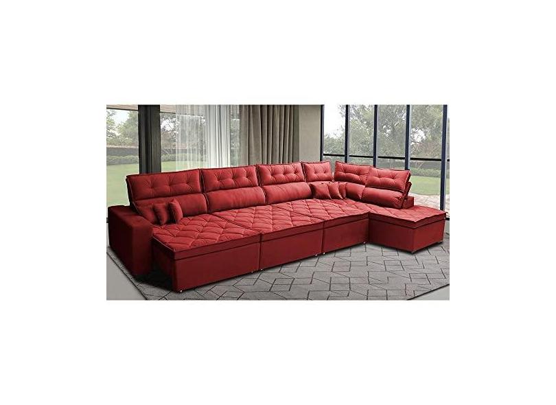 Sofá de Canto 4,80x2,36m Retrátil e Reclinável com Molas Cama Inbox Platinum Direito Suede Vermelho