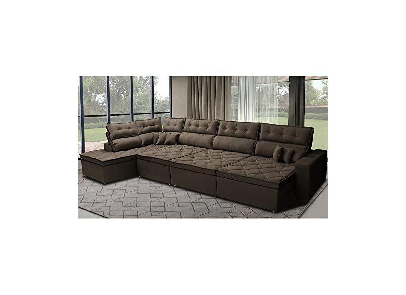 O menor preço encontrado no Brasil para Sofá de Canto 4,80x2,36m Retrátil e Reclinável com Molas Cama Inbox Platinum Esquerdo Suede Café atualmente é R$ 6.809,00.