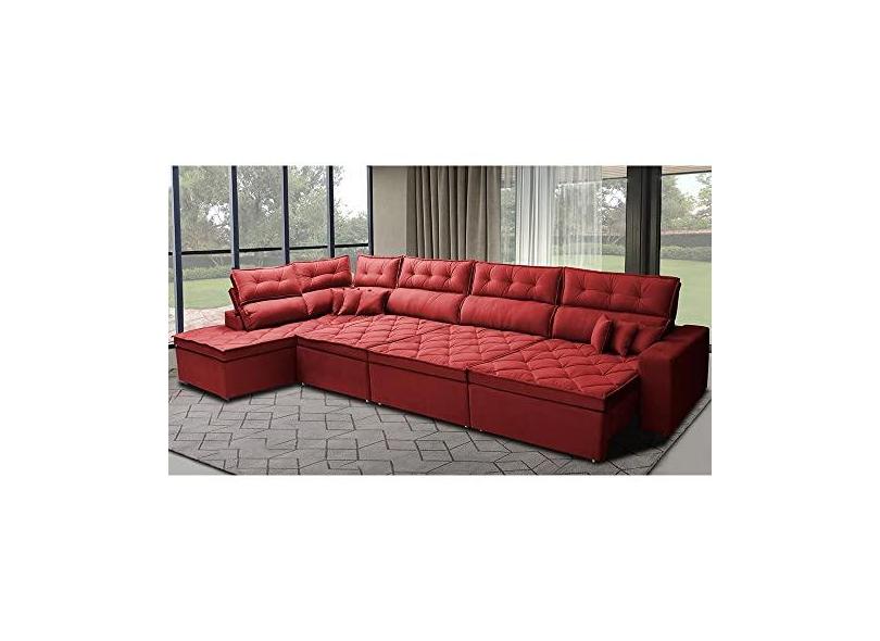 O menor preço encontrado no Brasil para Sofá de Canto 4,80x2,36m Retrátil e Reclinável com Molas Cama Inbox Platinum Esquerdo Suede Vermelho atualmente é R$ 6.809,00.