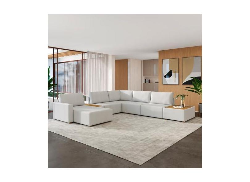 O menor preço encontrado no Brasil para Sofá de Canto Decorativo Sala de Estar 715cm Modulado Takashi com Chaise e Puffs Linho Off White G45 - Gran Belo atualmente é R$ 11.559,90.